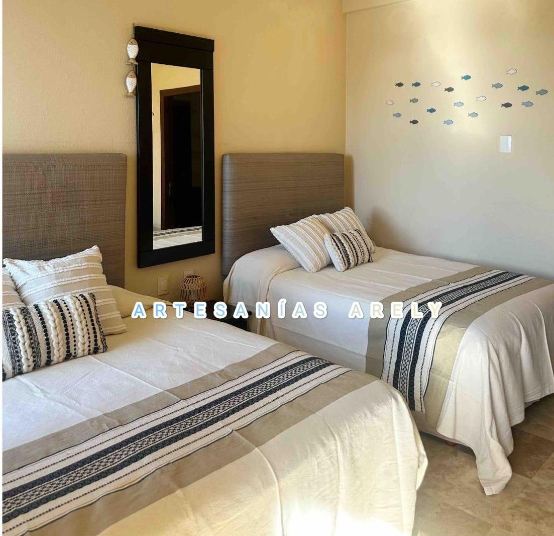 Cubrecama Artesanal Mexicano hecho en telar de pedal. Hecho de algodón. Material fresco, resistente y de excelente calidad.