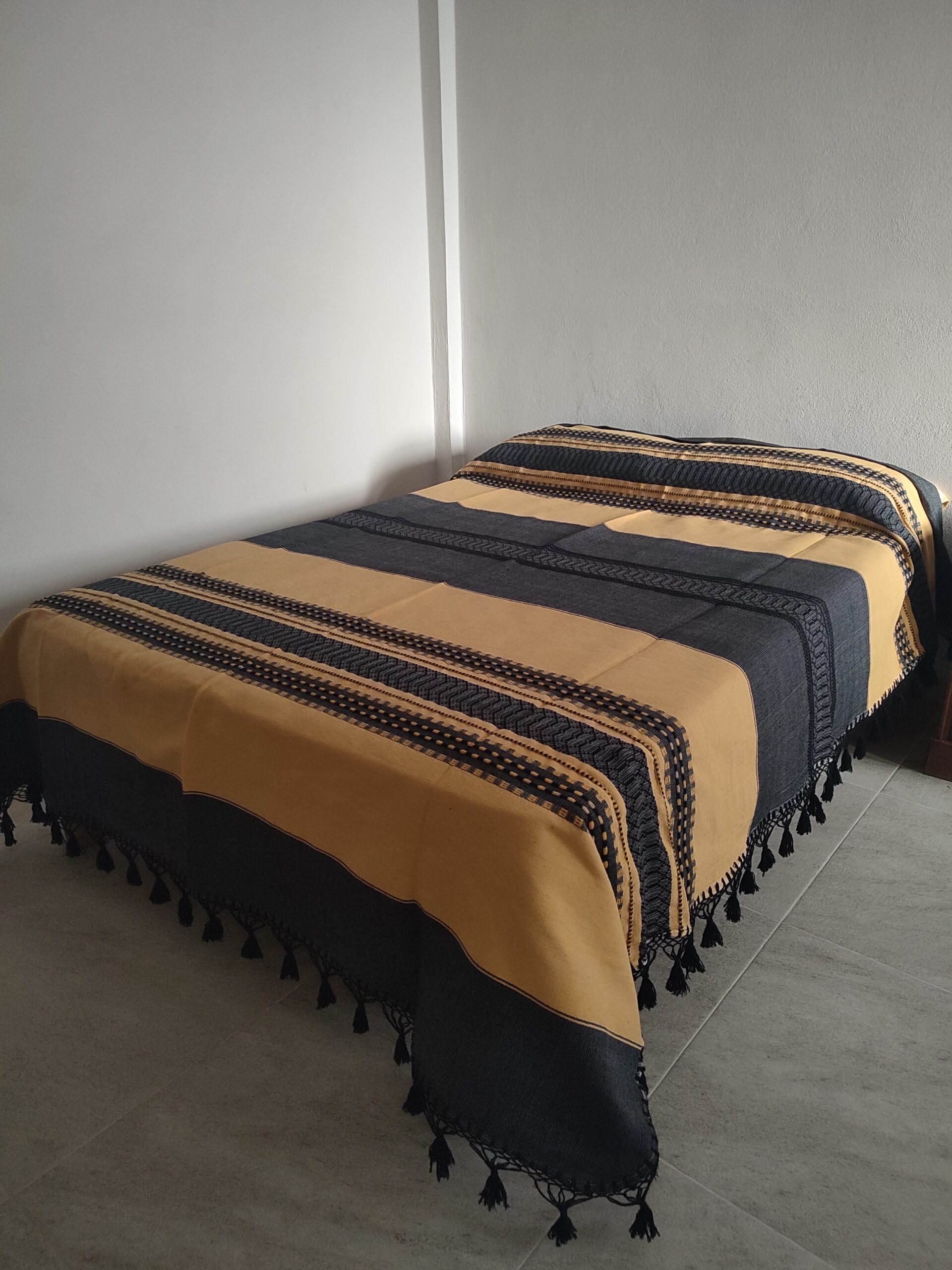 Cubrecama Artesanal Mexicano hecho en telar de pedal. Hecho de algodón. Material fresco, resistente y de excelente calidad.