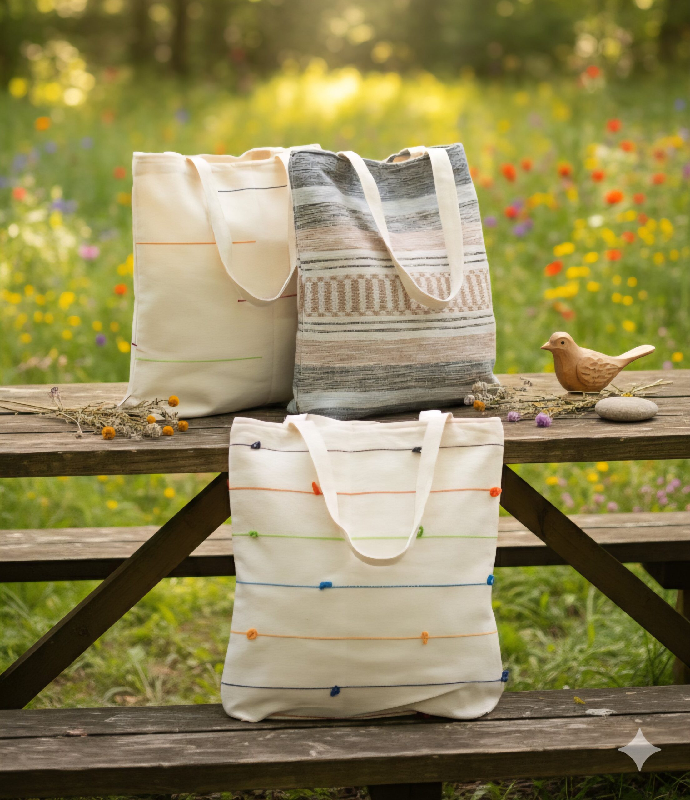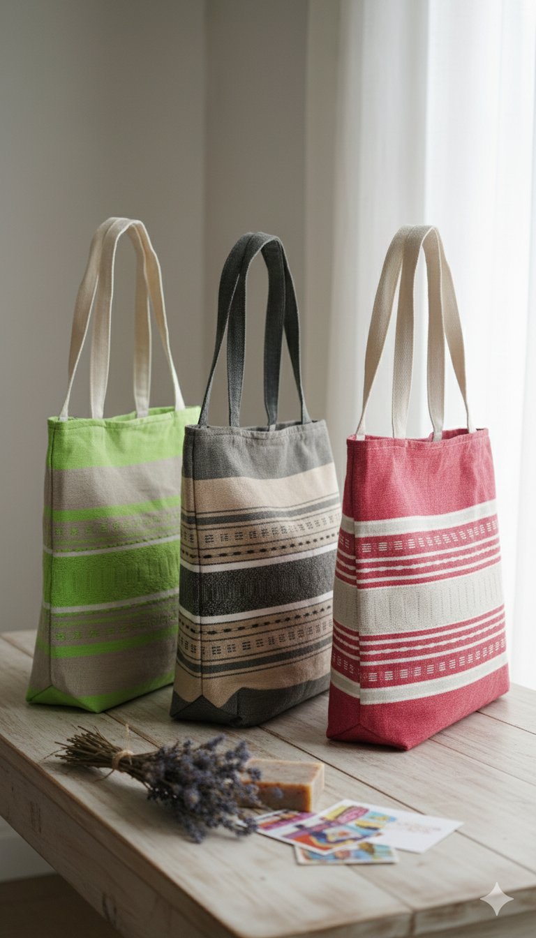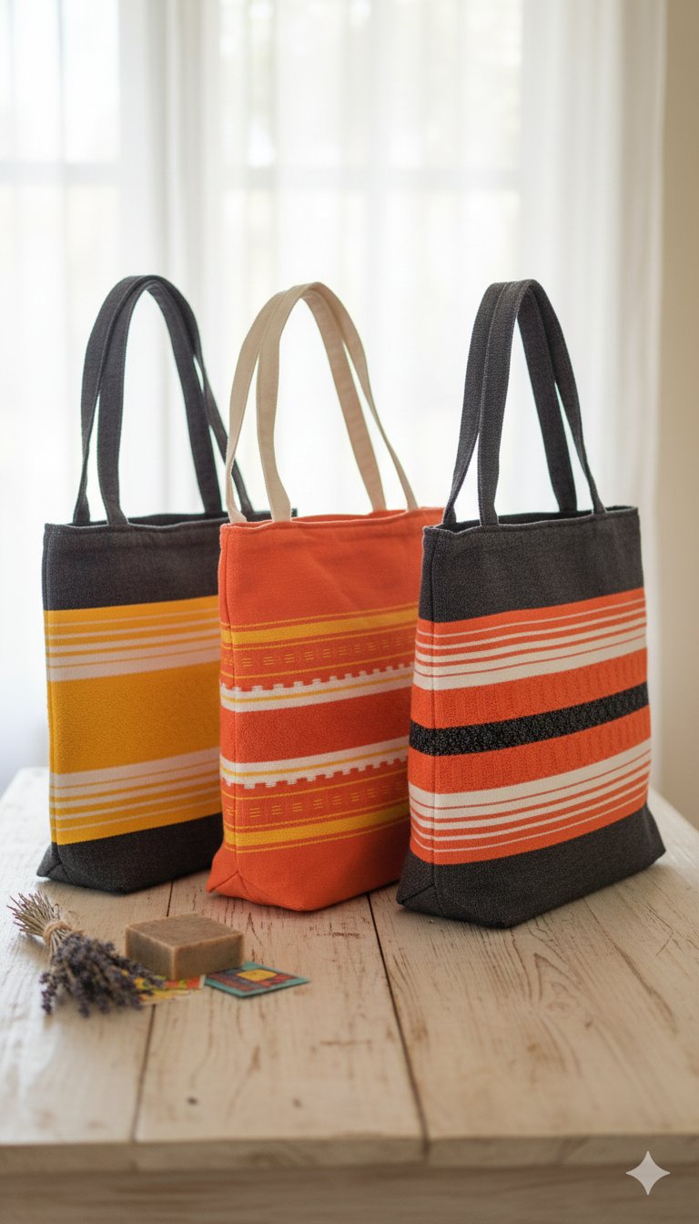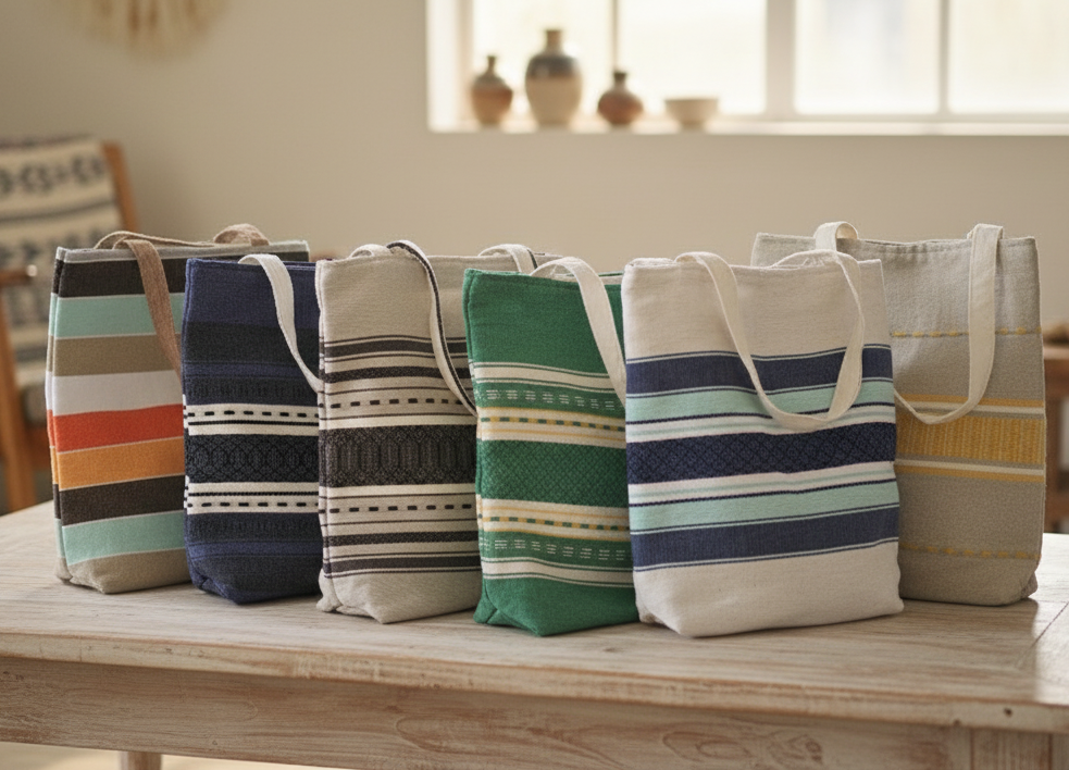 Bolsas artesanales 100% hechas a mano en telar de pedal.